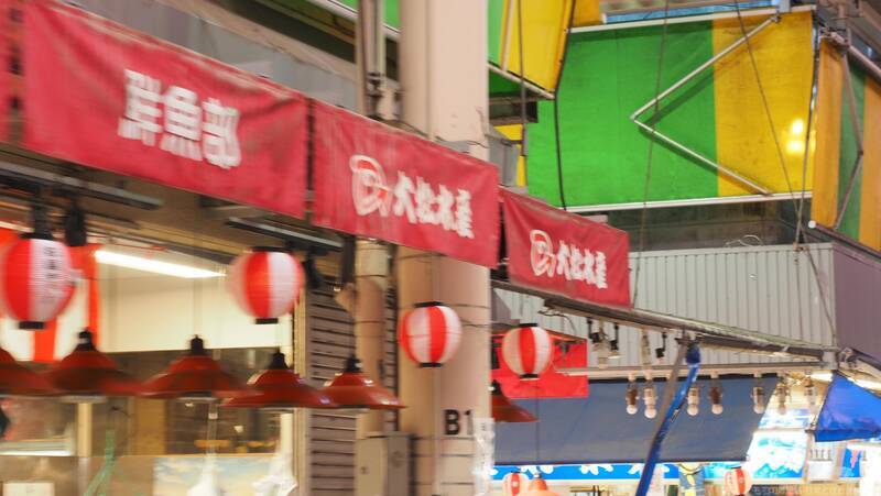 上近江町通りにある場所です。大松水産はいくつもありますが、刺し身等を売っている場所のところになります。