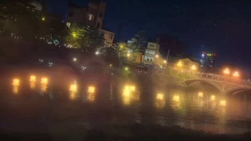 テザーPVにて登場。この角度での撮影はこれだけで、桜の時期はライトアップされるので多くの人で賑わいます。