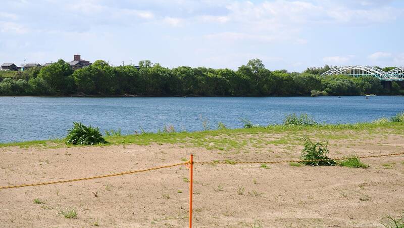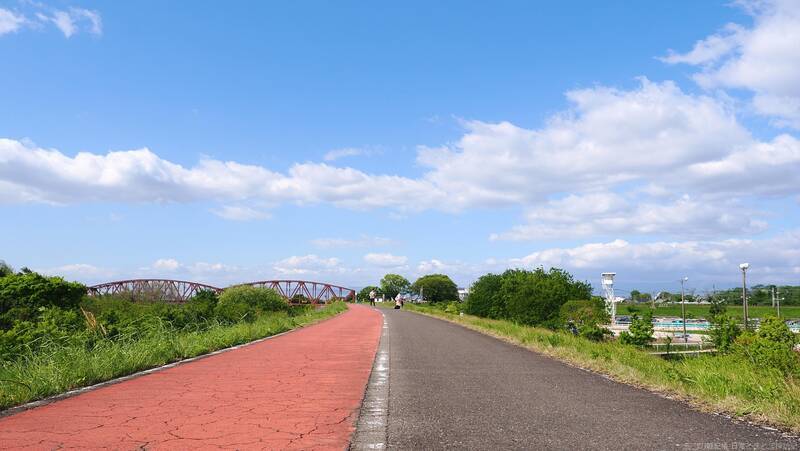 サイクリングロードから坂を下ったところ。そのまま行くと笠松みなと公園へといけます。