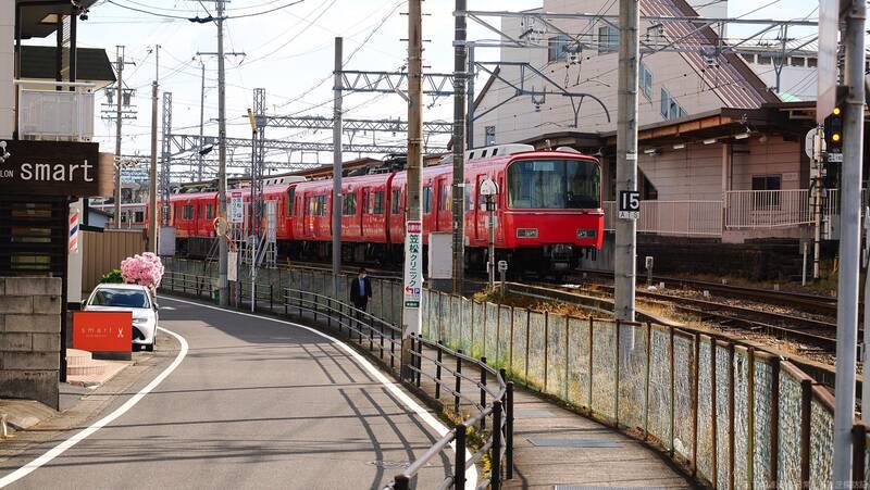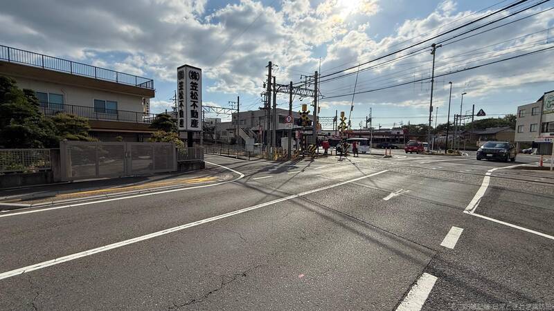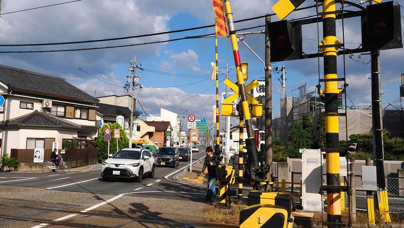 名鉄笠松駅中央口を降りたすぐの踏切が出ていました。フジマサマーチが早朝走っていたのもこの辺ですね。
