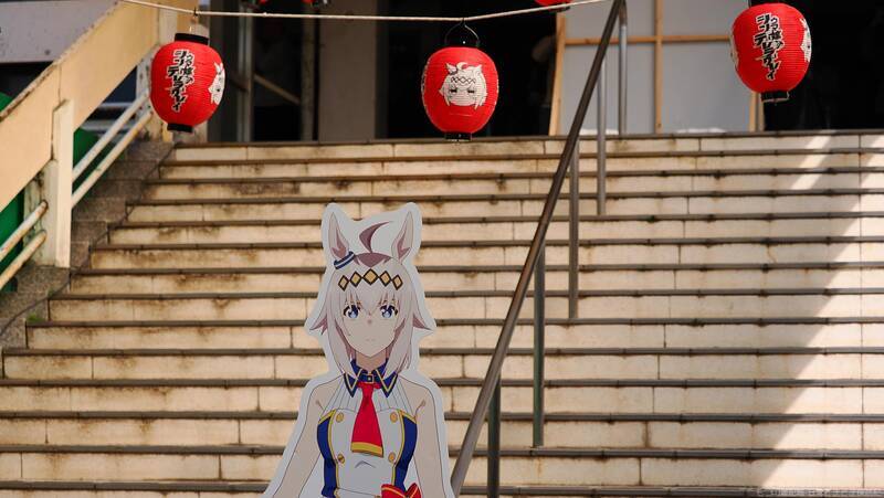 まずは広めの角度から右側方向までのカット。最初の新笠松音頭からあんなにガラッと変わったらそりゃびっくりしますよね。コラボ期間中は衣装のオグリと新笠松音頭が延々と流れていました。